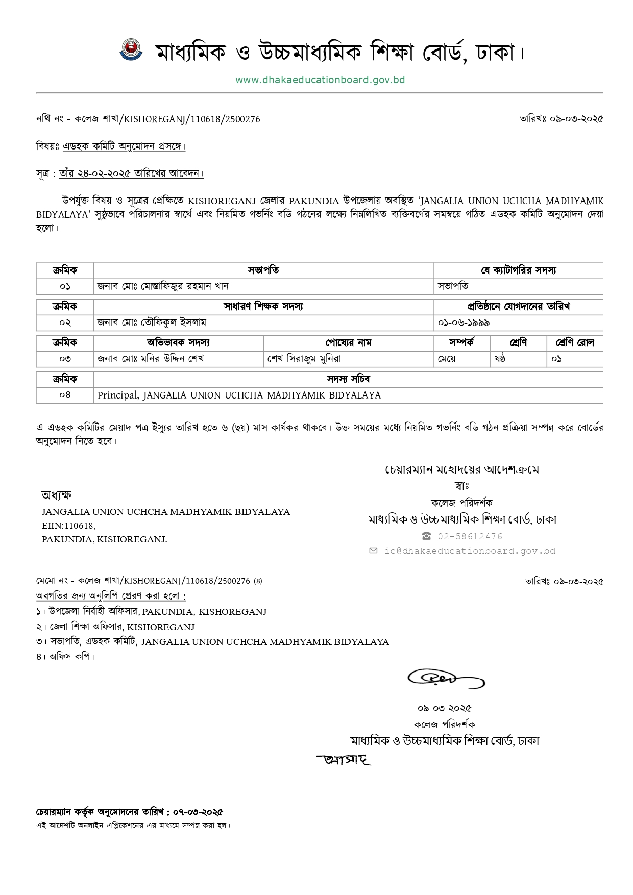 ম্যানিজিং কমিটি / গভর্নিংবডি